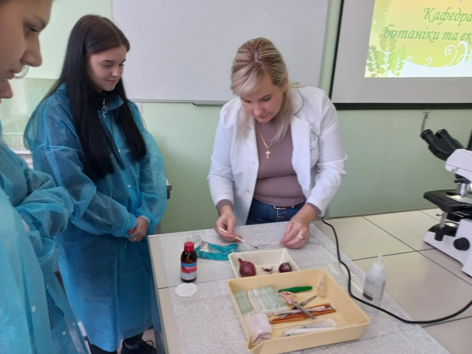 Найбільшу зацікавленічть ліцеїсти виявляли до сучасного обладнання, яке було продемонстровано їм. Робота з сучсним мікроскопом та портативним pH-метром викликала захоплення та інтерес до світу біологічних знань.