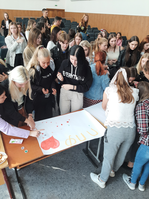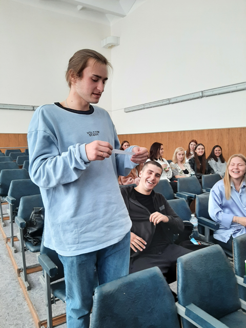 The acquaintance with each other took place in the game format, during which the freshmen had to share an interesting fact about them. The subject of the message was determined with the help of special predetermined topics (укр. “фантів”). The freshmen supported the exciting interactivity with joy and great enthusiasm.
