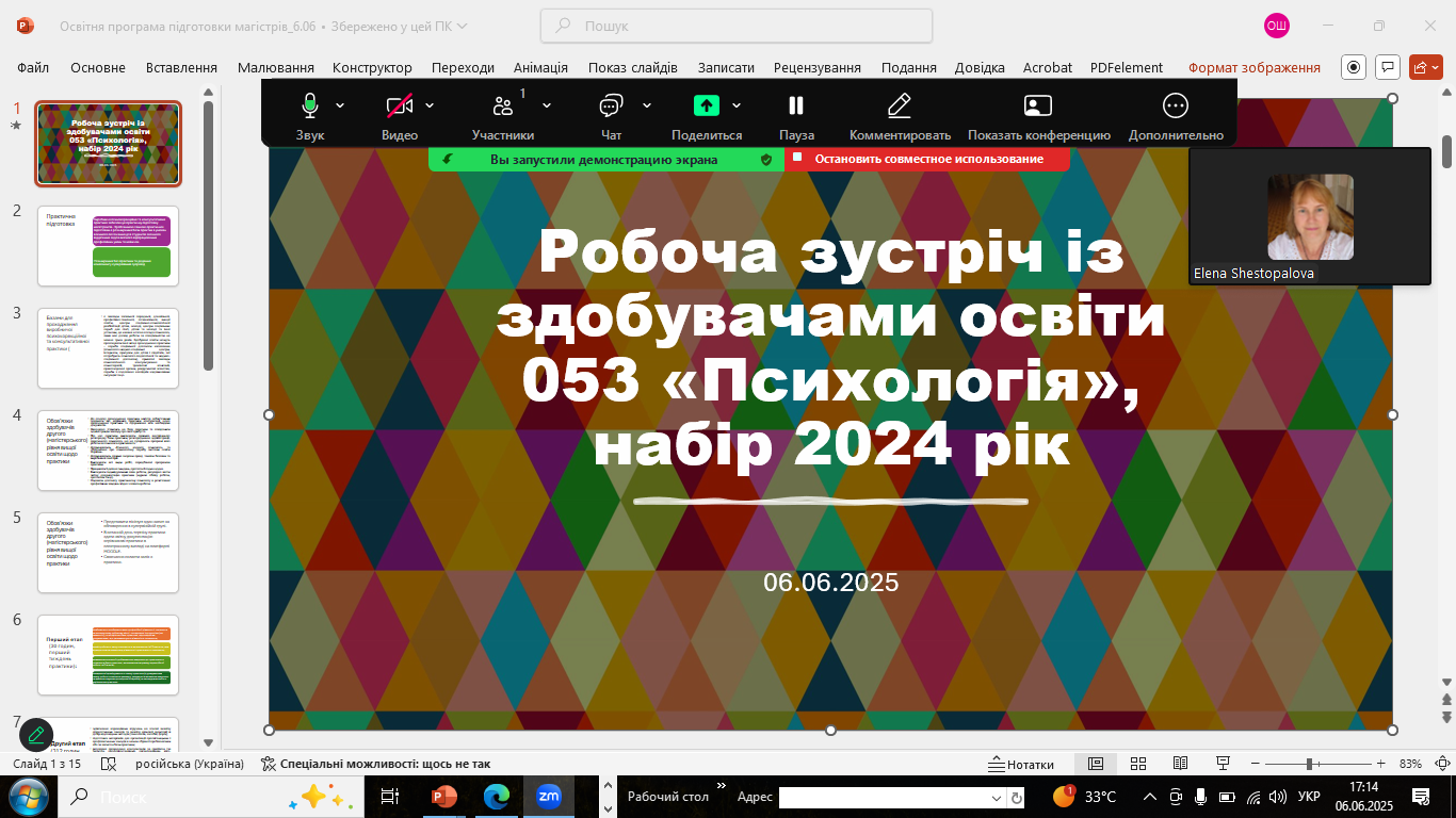 17.06.2025 року відбулась чергова зустріч здобувачів освіти спеціальності С4 Психологія із представниками зацікавлених сторін (стейкголдерами).