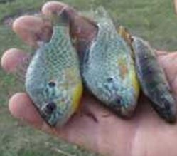 У Південному водосховищі та кількох затоплених кар’єрах зустрічається сонячний окунь, або сонячна риба синьозяброва (Lepomis gibbosus L.), завезена ще в 19 столітті на територію Європи з Канади як декоративна риба, яка в наші природні та штучні водойми попала, очевидно,завдяки акваріумістам. Даний вид не має промислового значення, хоча є їстівним.